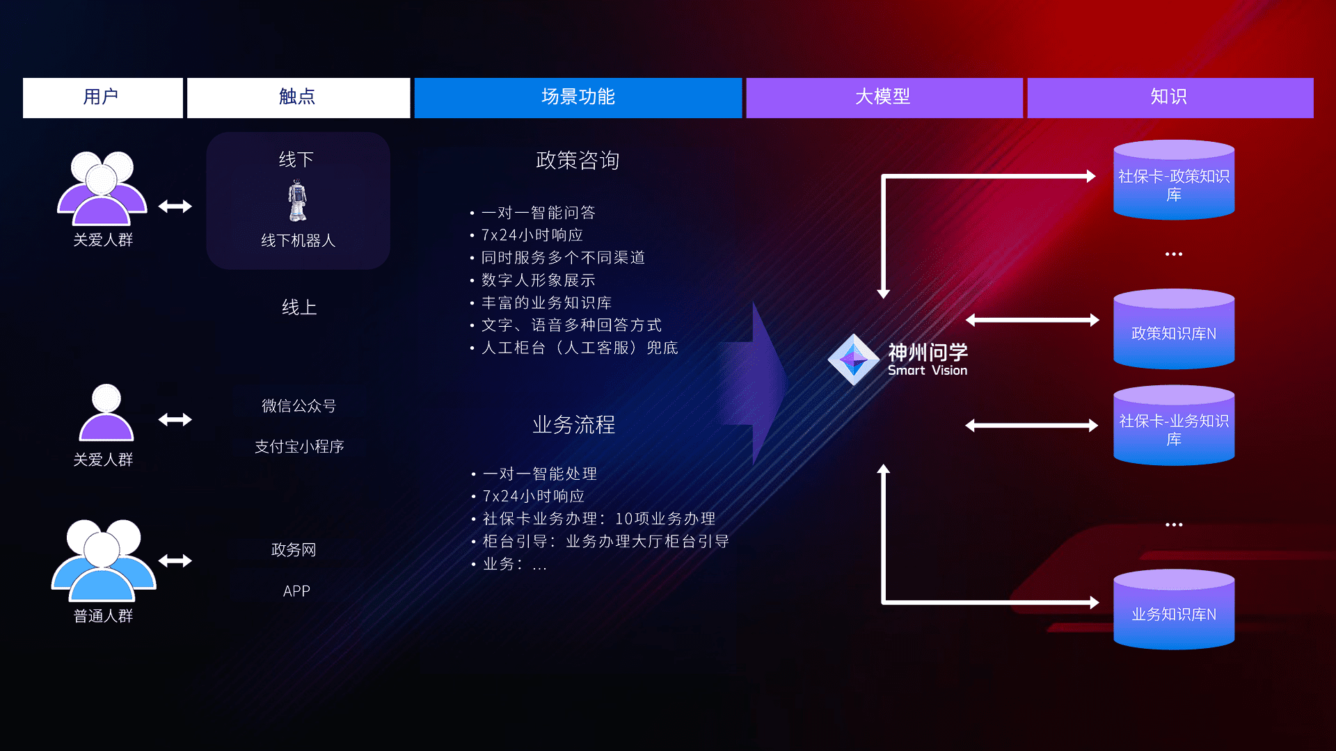 在服务大厅部署客服机器人,,,,在线上应用和小程序配置客服数字人,,,,724小时为群众解答常规问题,,,客服机器人无法处理的,,,,转现场人工处理。。